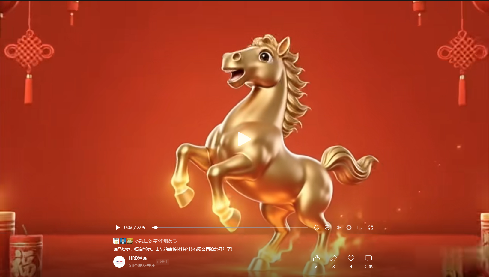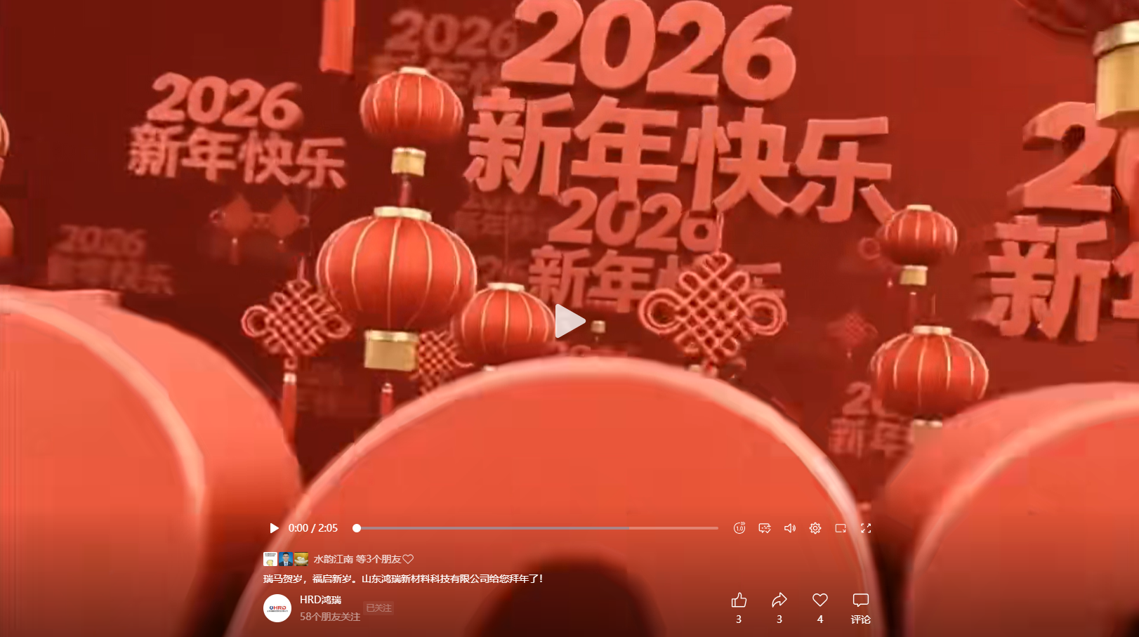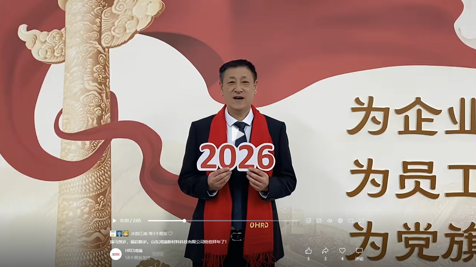 山東鴻瑞新材料科技有限公司董事長和總經(jīng)理攜全體員工向一直關(guān)心、支持和幫助公司發(fā)展的各位領(lǐng)導(dǎo)和新老客戶拜年!